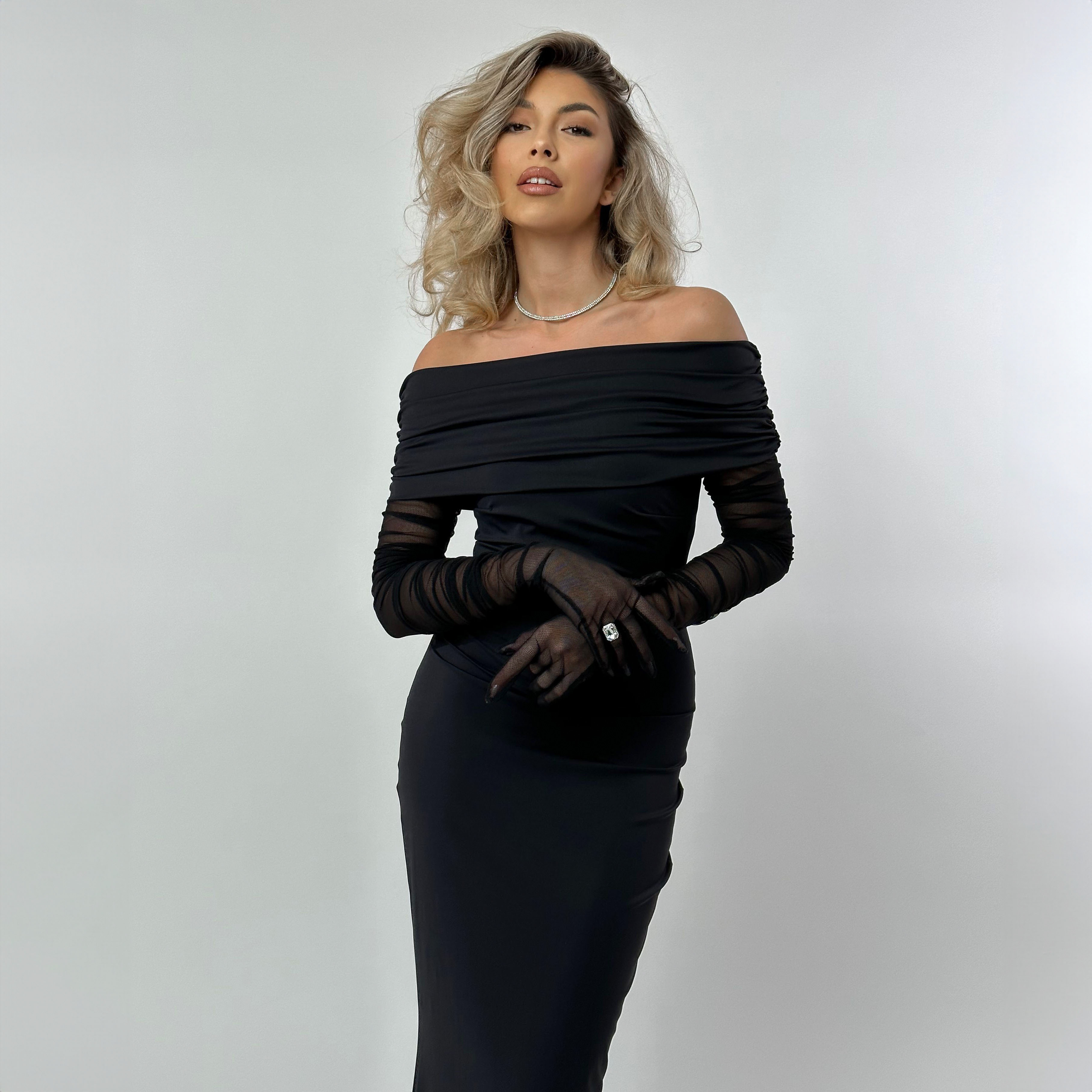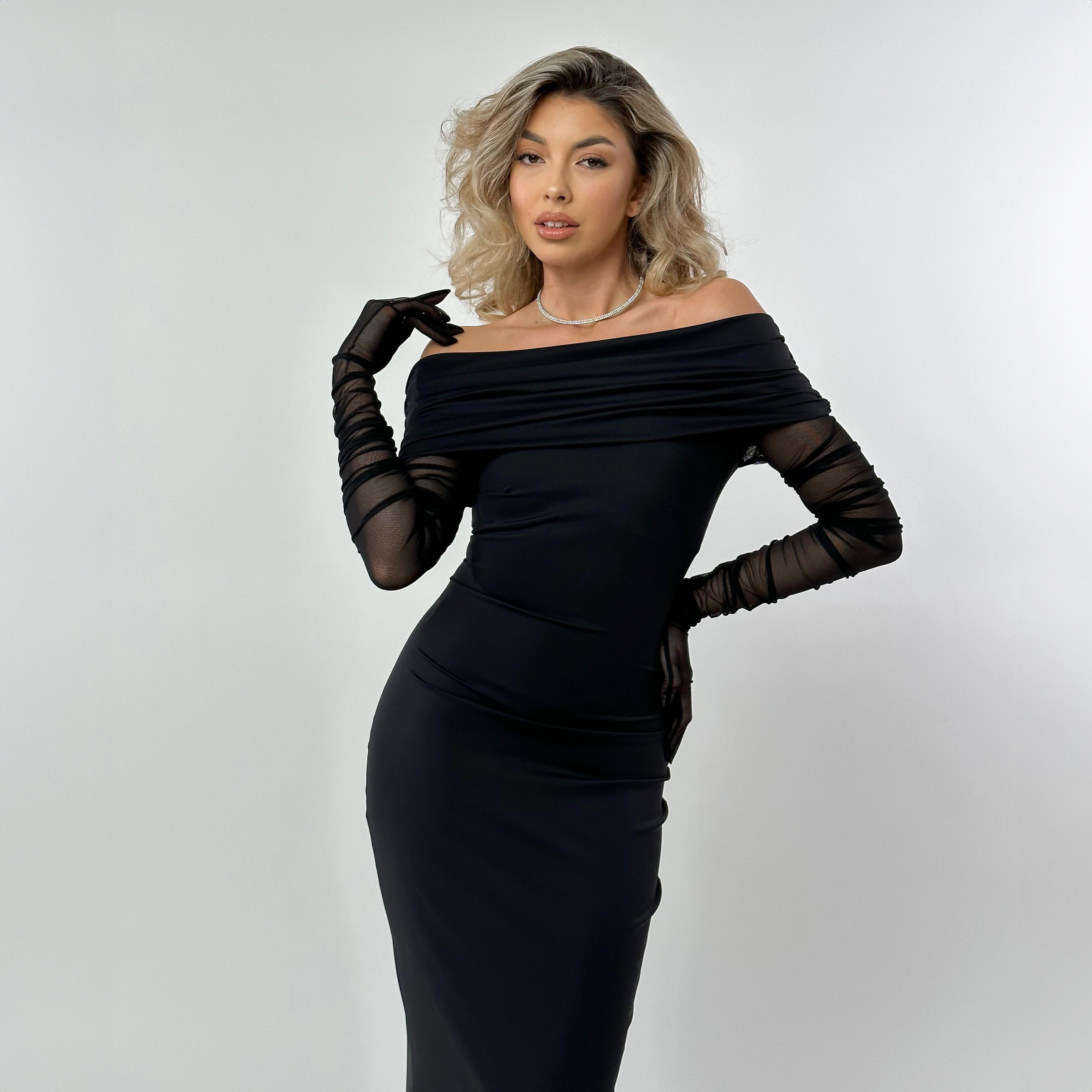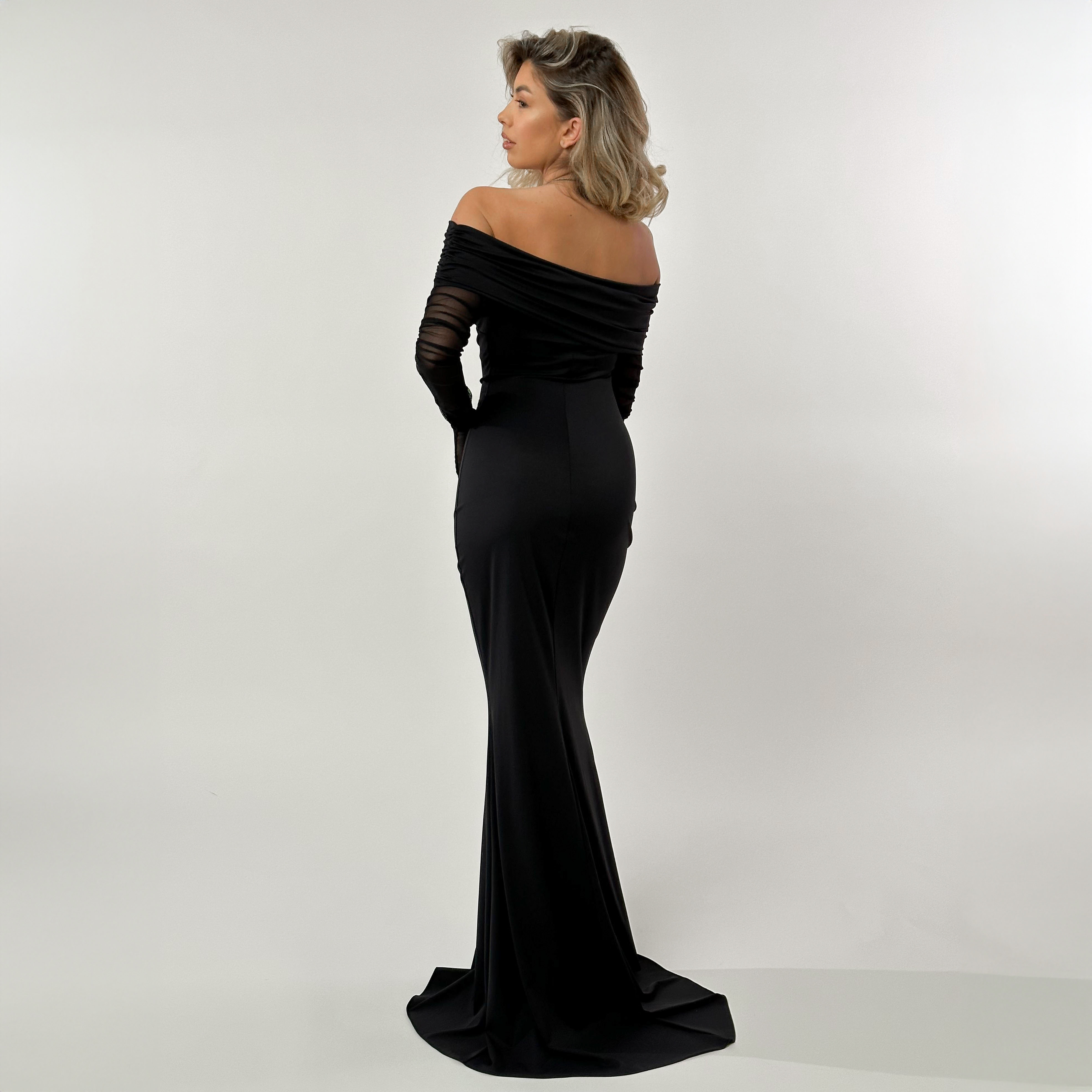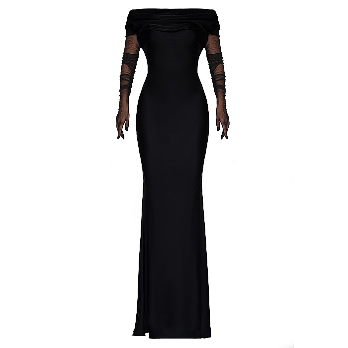 Rochie Dama Lunga Cu Umerii Goi Neagra Lycra - Ruxa