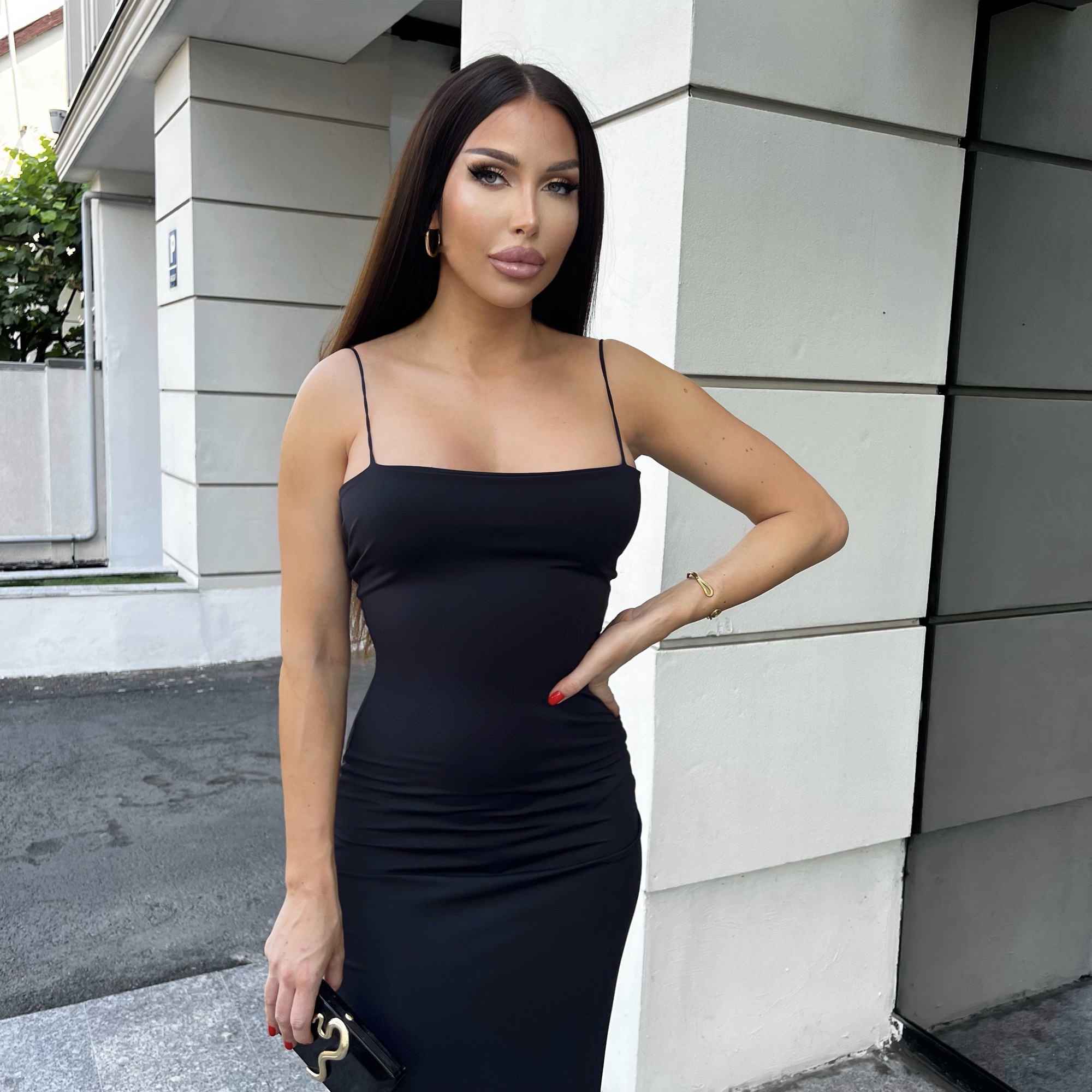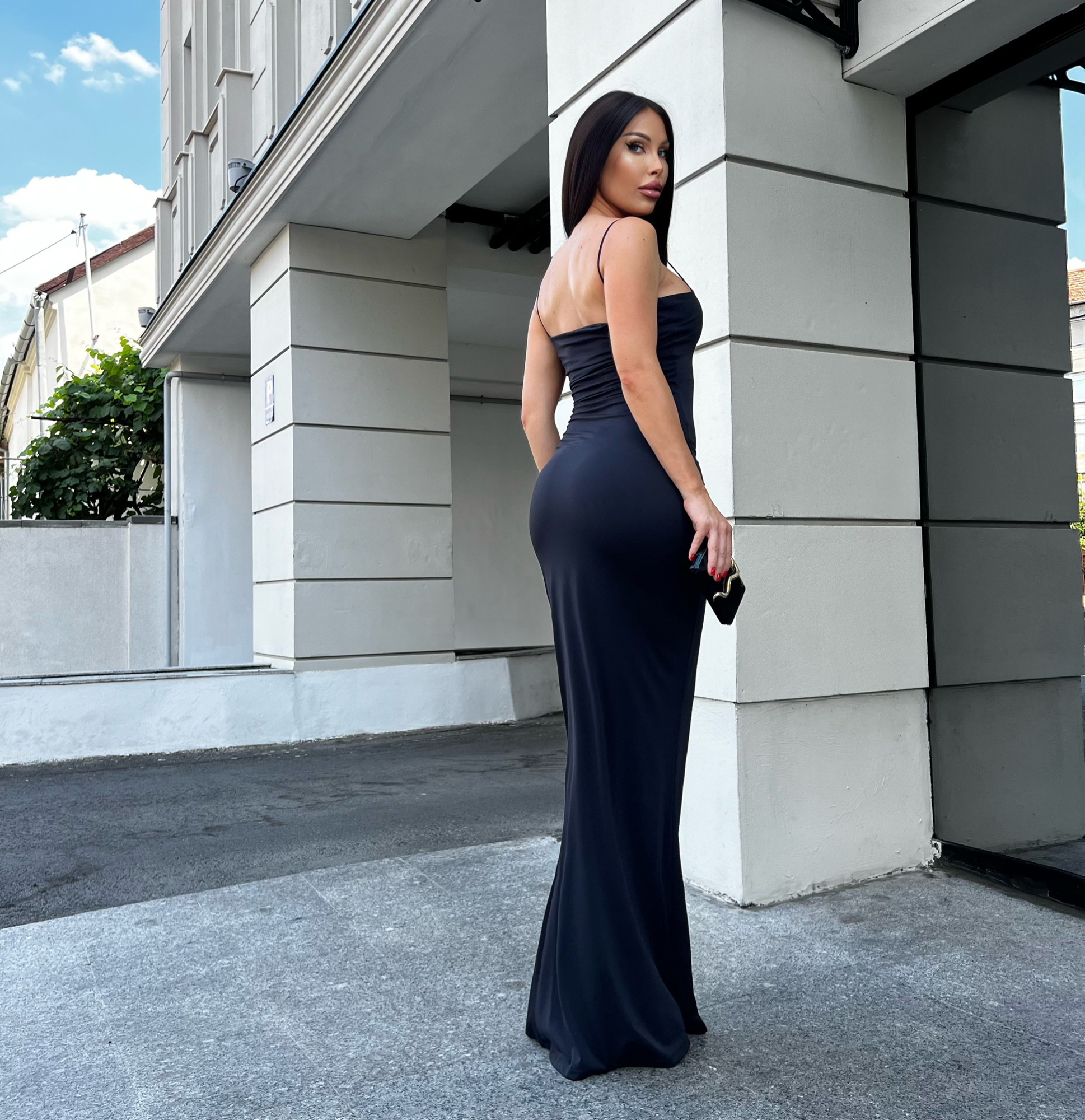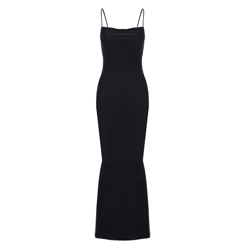Rochie Dama Lunga Decoltata Neagra Lycra - Olesya