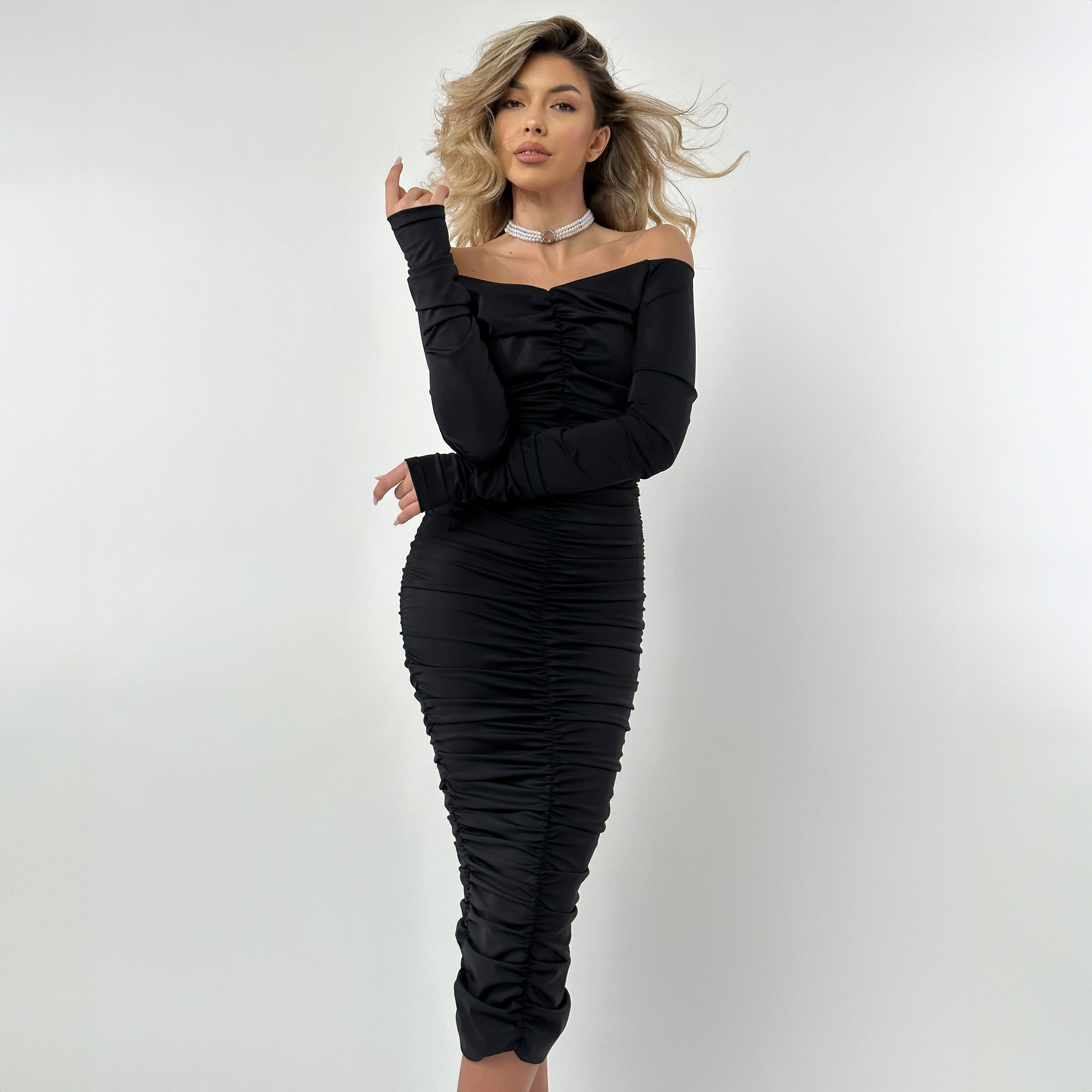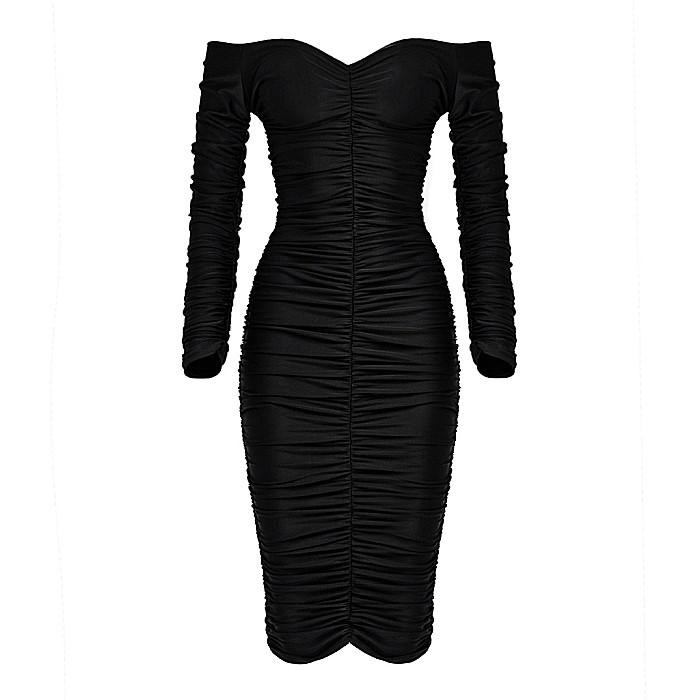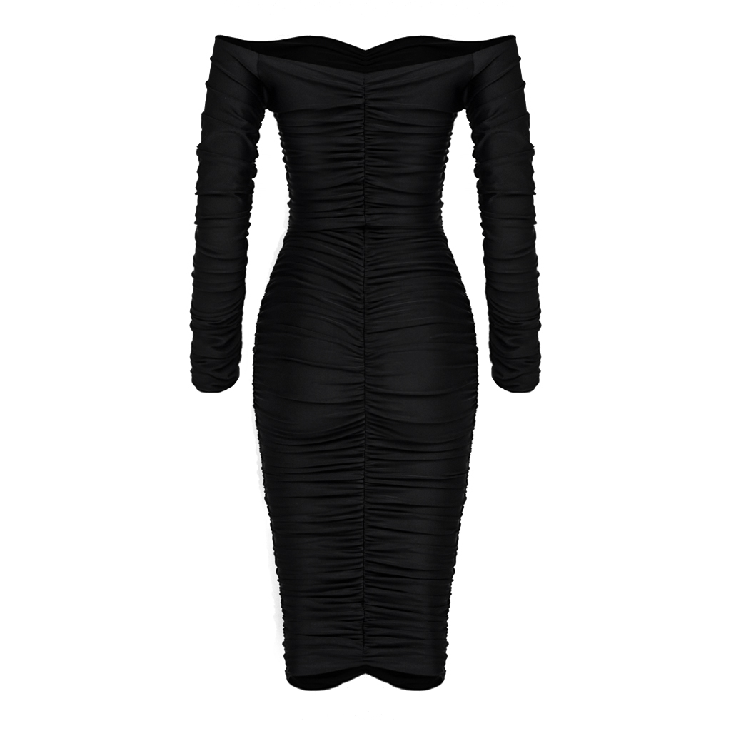 Rochie Dama Medie Cu Umerii Goi Neagra Lycra – Kayla