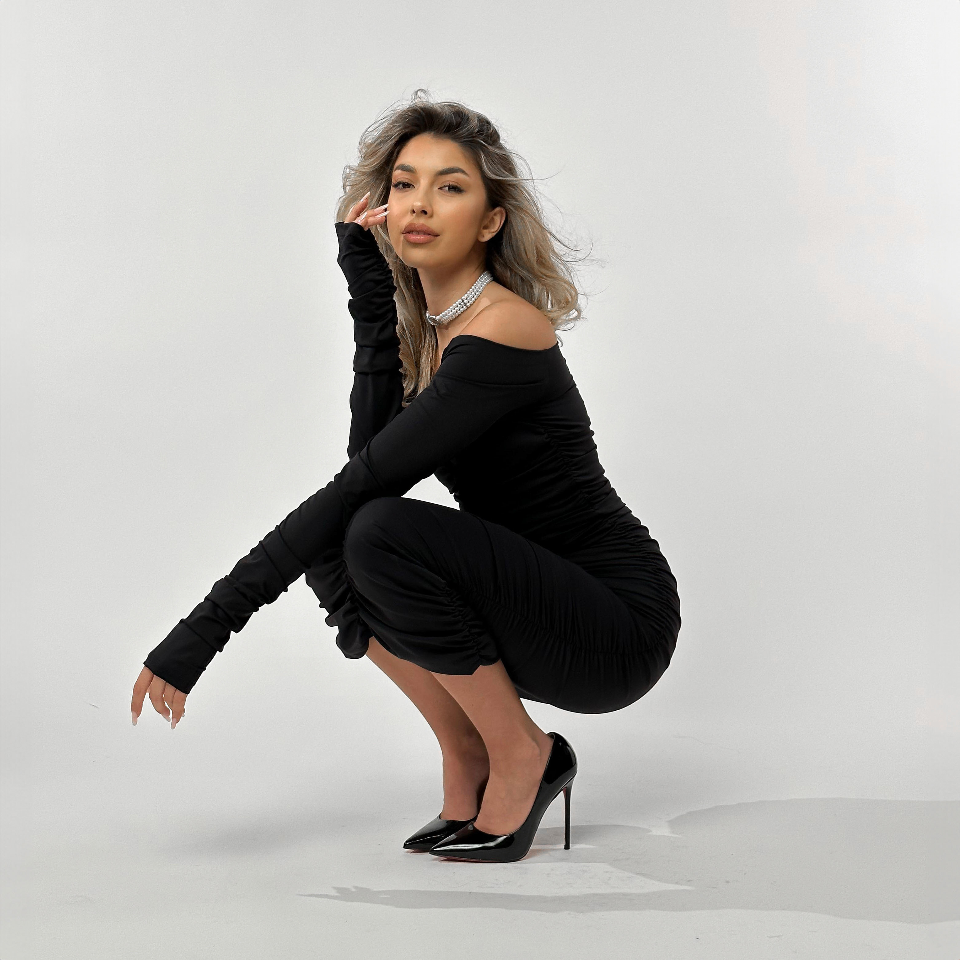 • Design modern cu pliuri peste tot pentru a evidentia silueta;