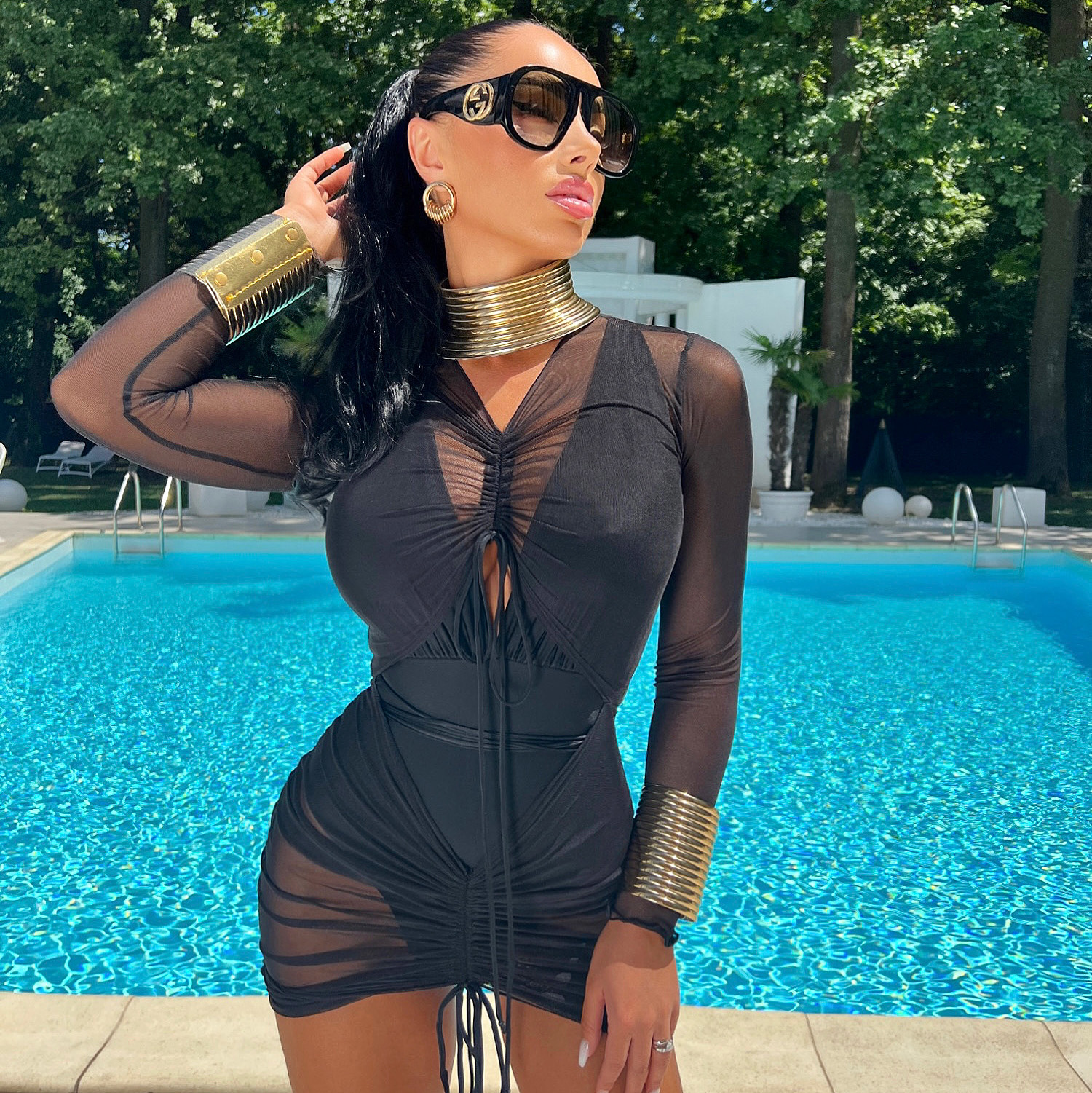 • Design modern cu pliuri peste tot pentru a evidentia silueta;