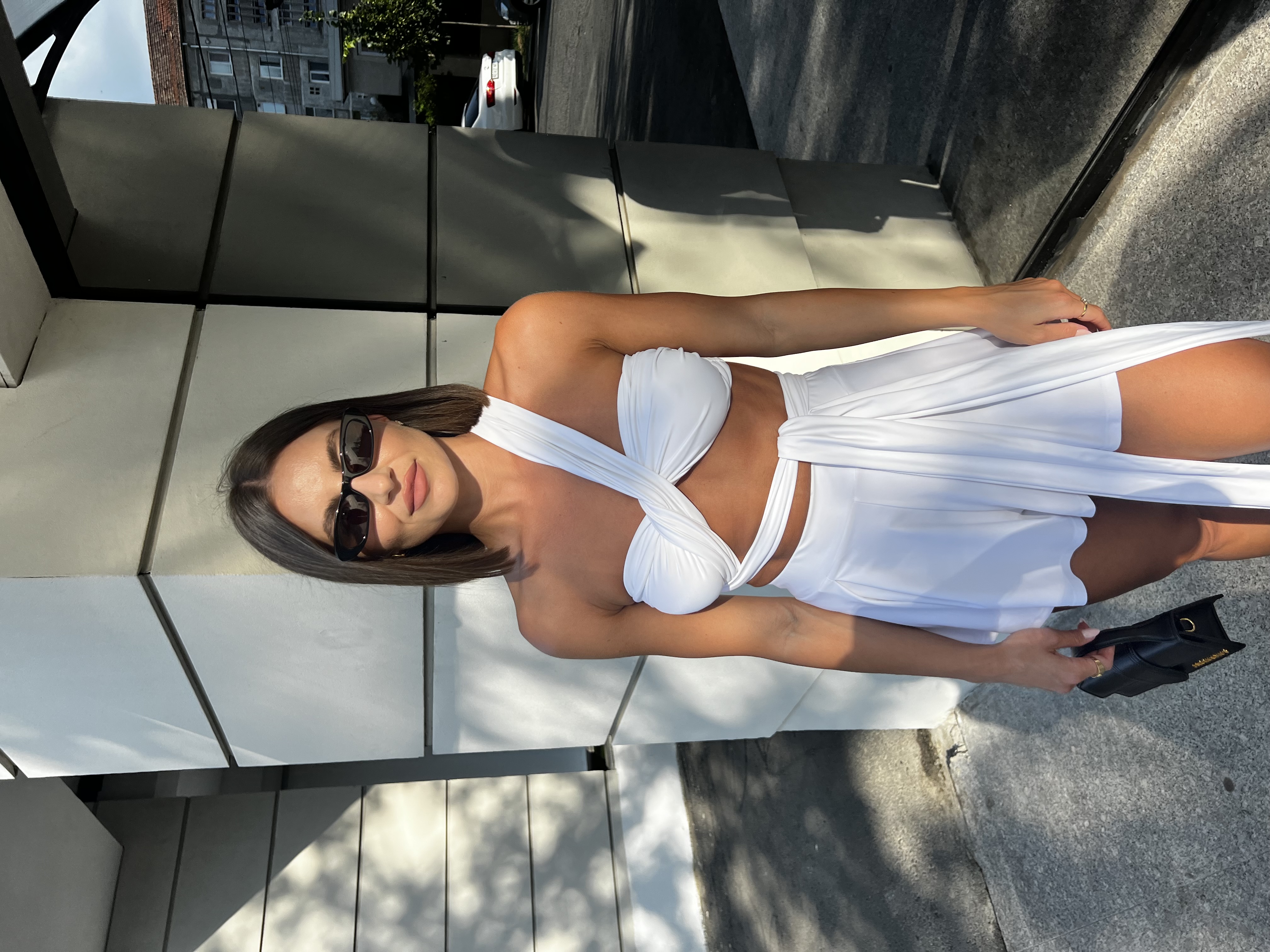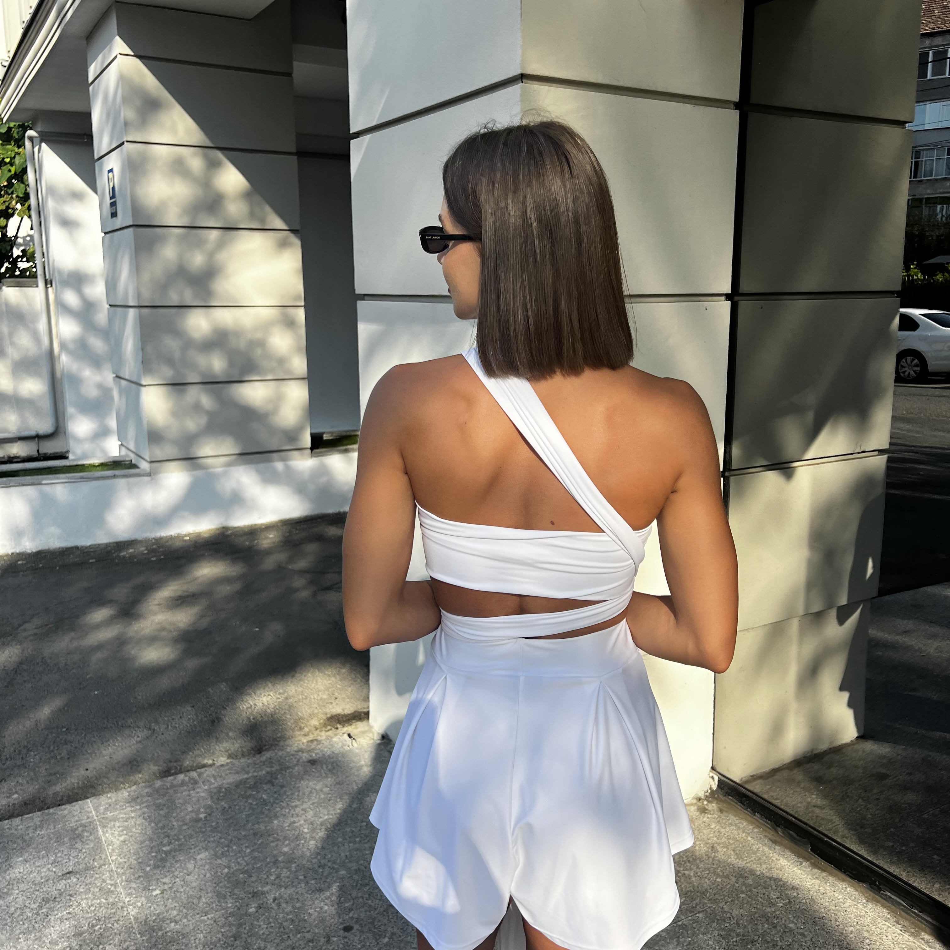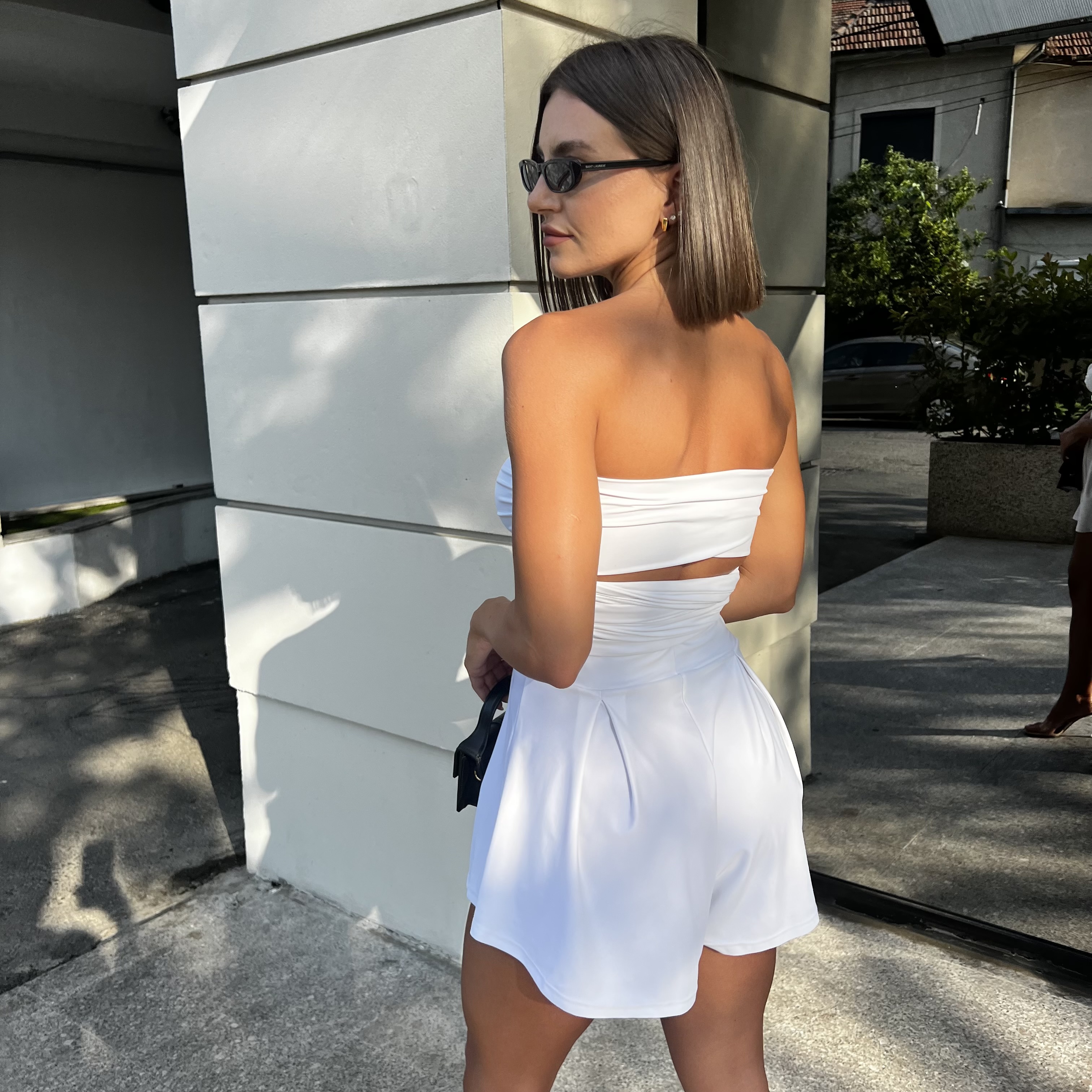 Top Dama Sexy Versatil Fara Maneci Alb Lycra – Yndoll