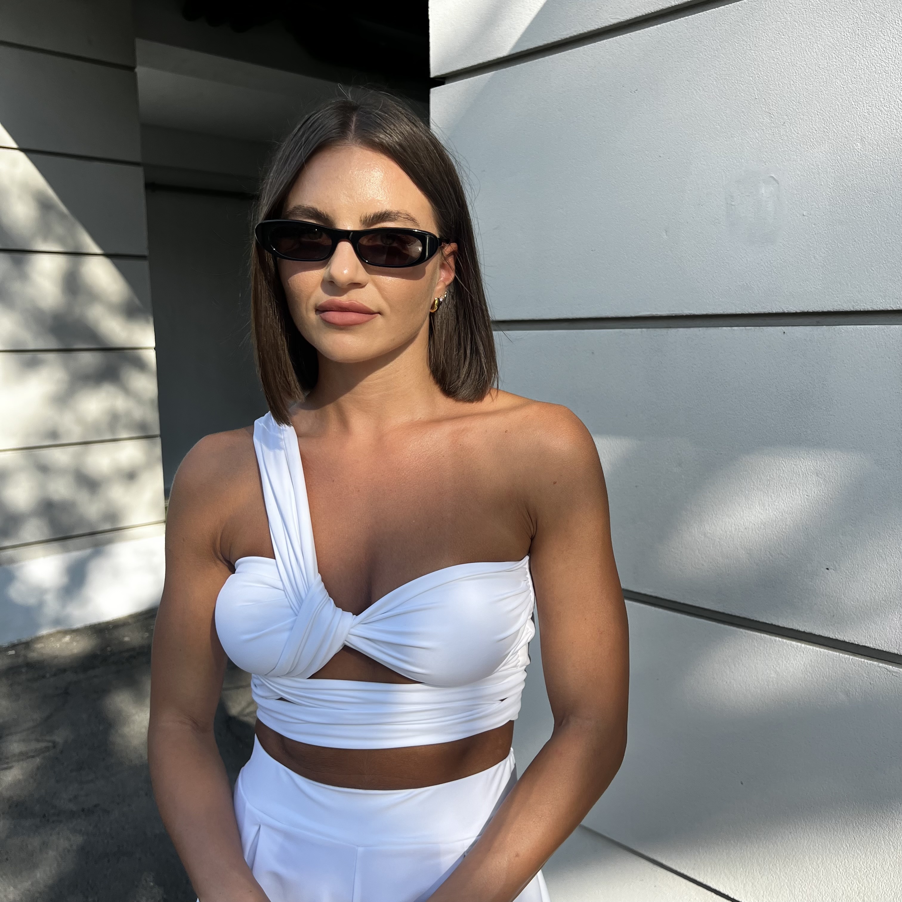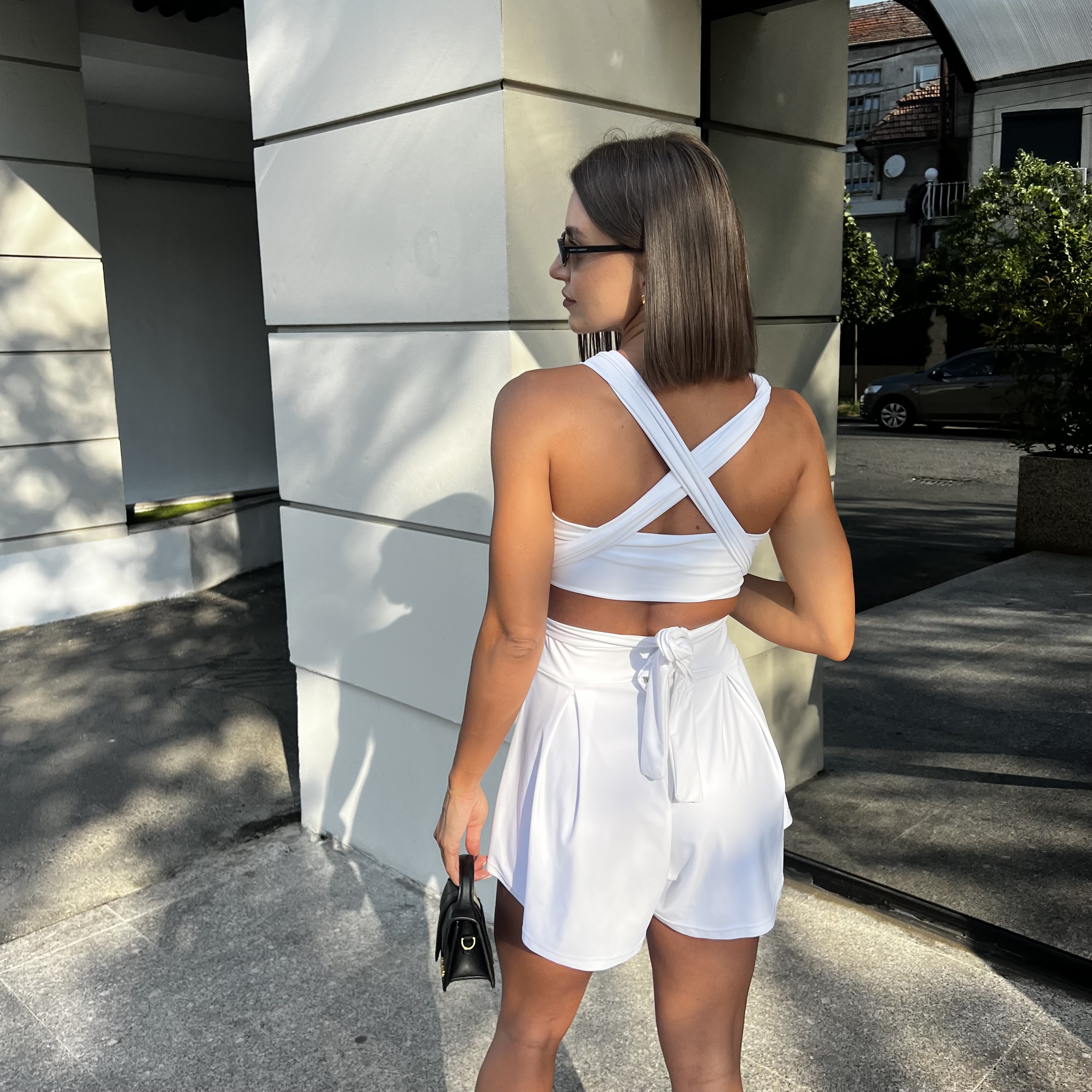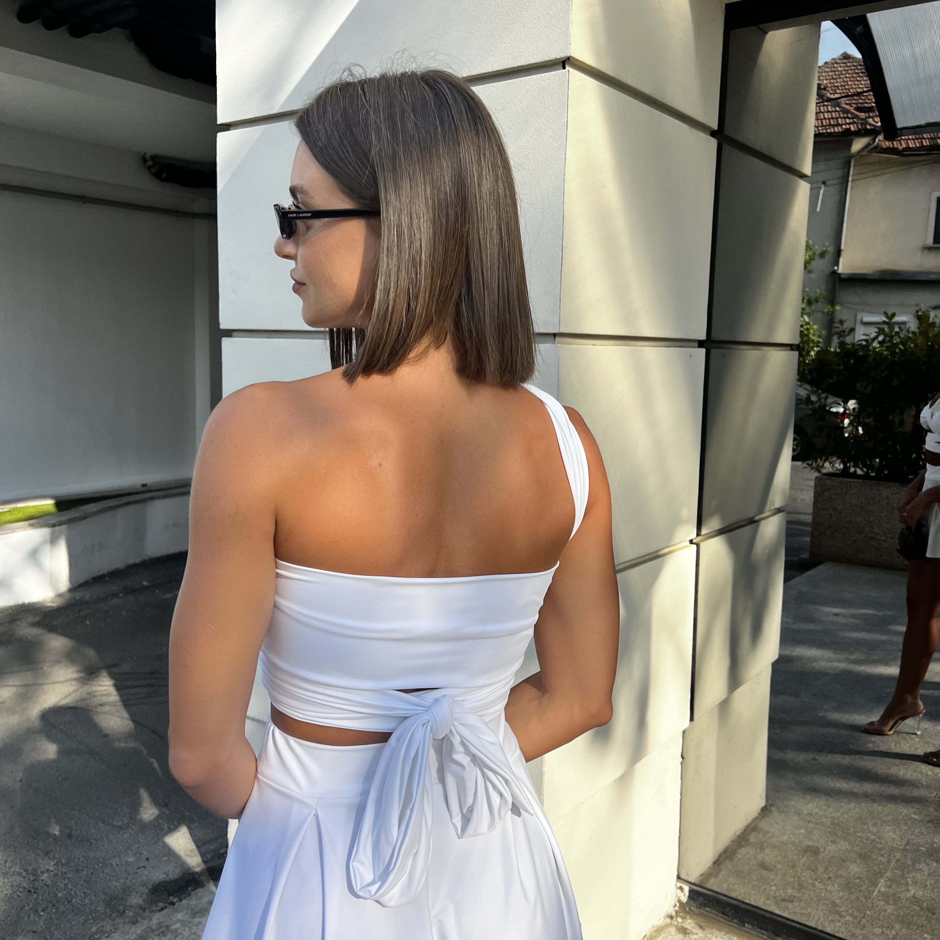 Top Dama Sexy Versatil Fara Maneci Alb Lycra – Yndoll