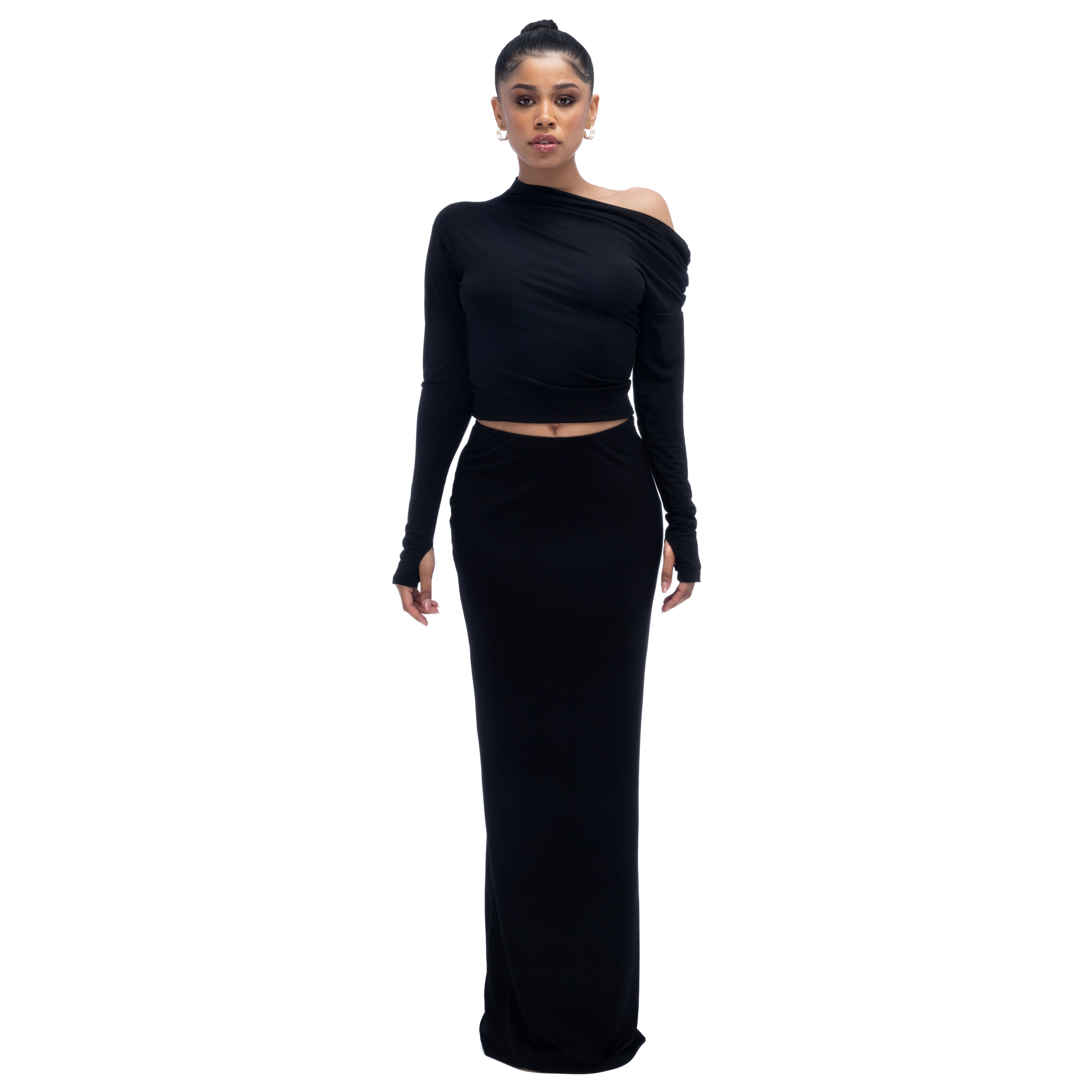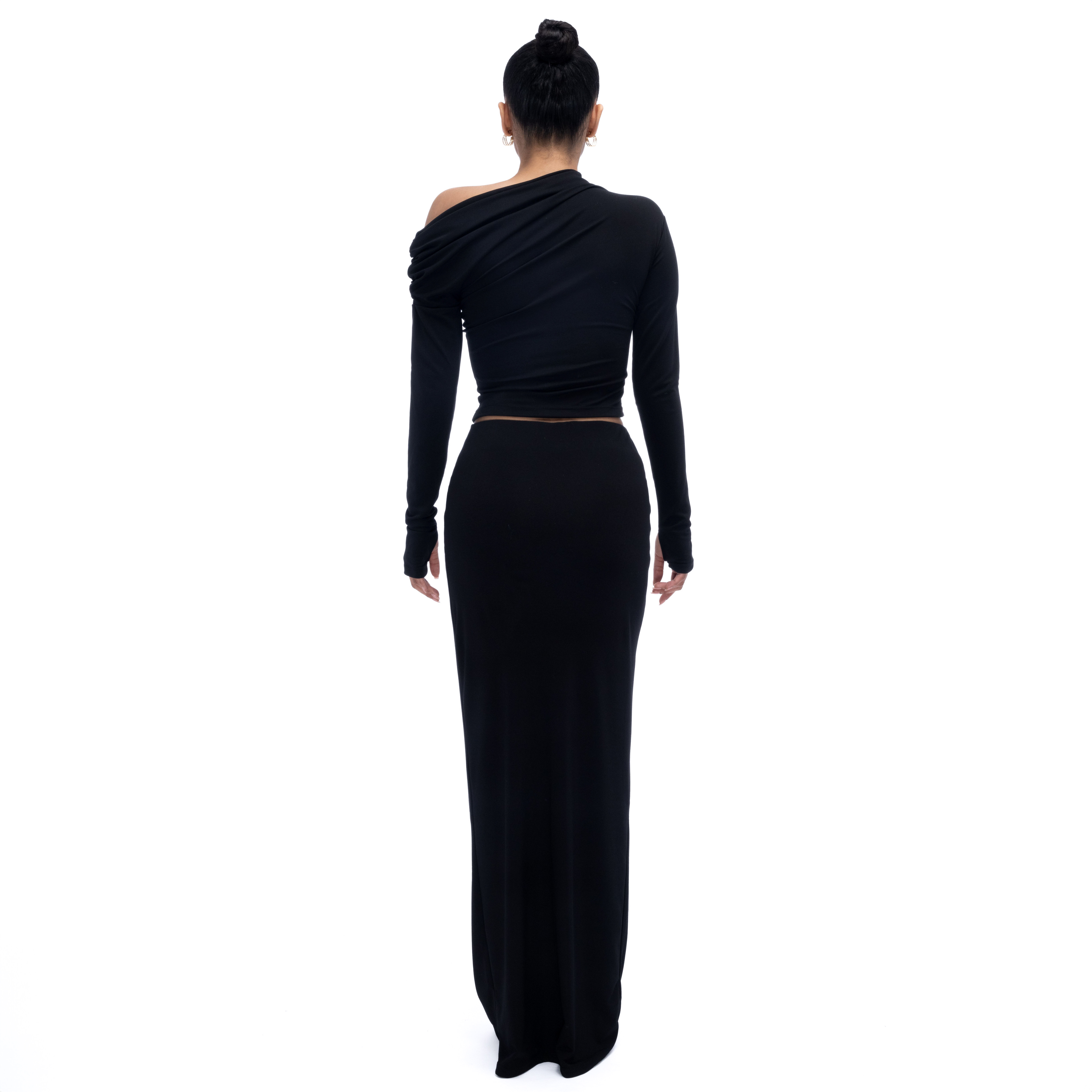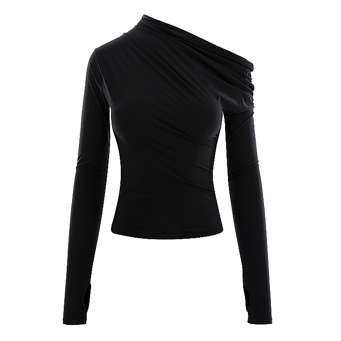 Top Dama Lung Pe Un Umar Negru Lycra- Deea