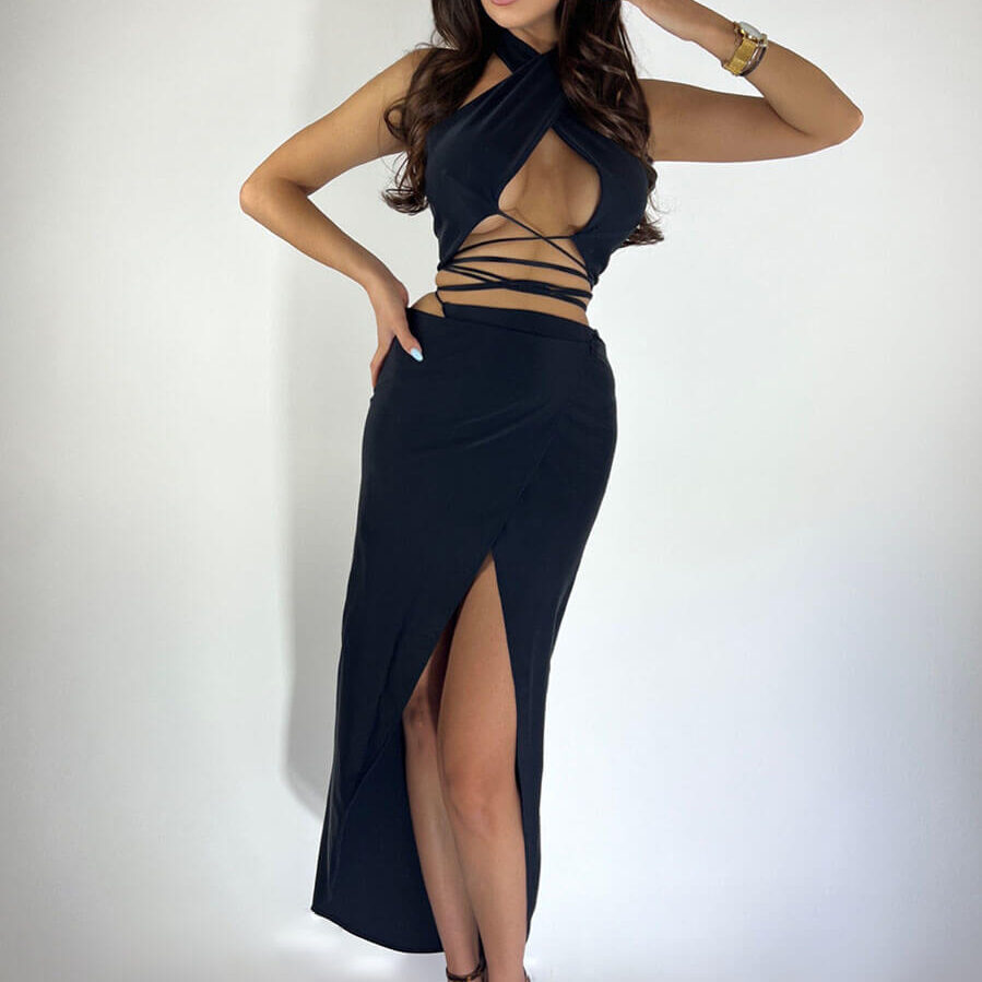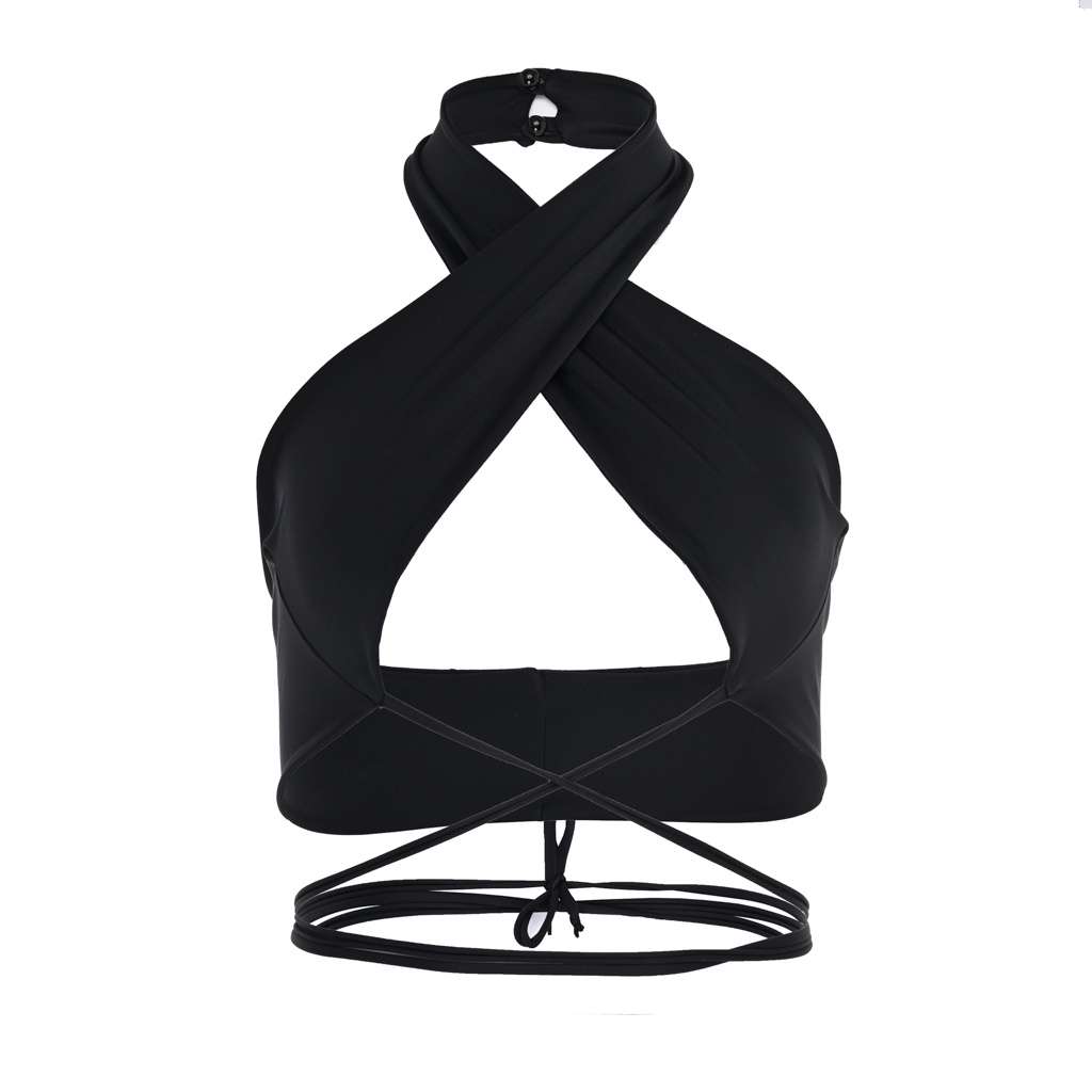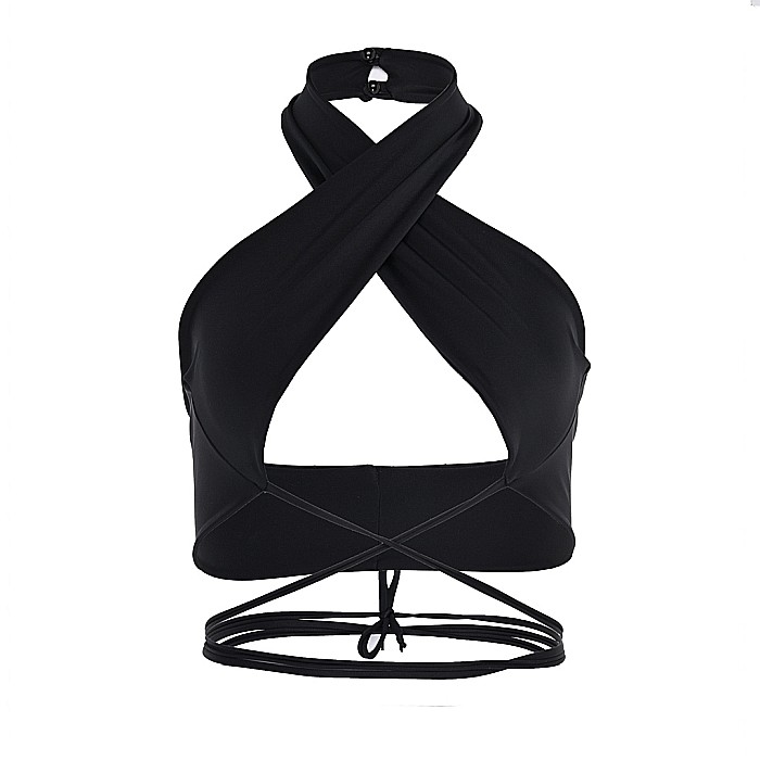 Top Dama Sexy Fara Maneci Negru Lycra - Alma
