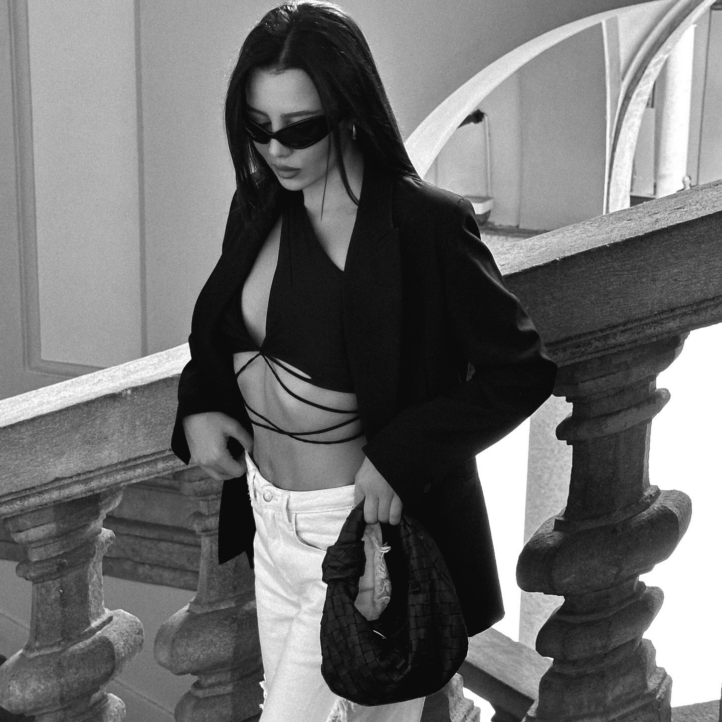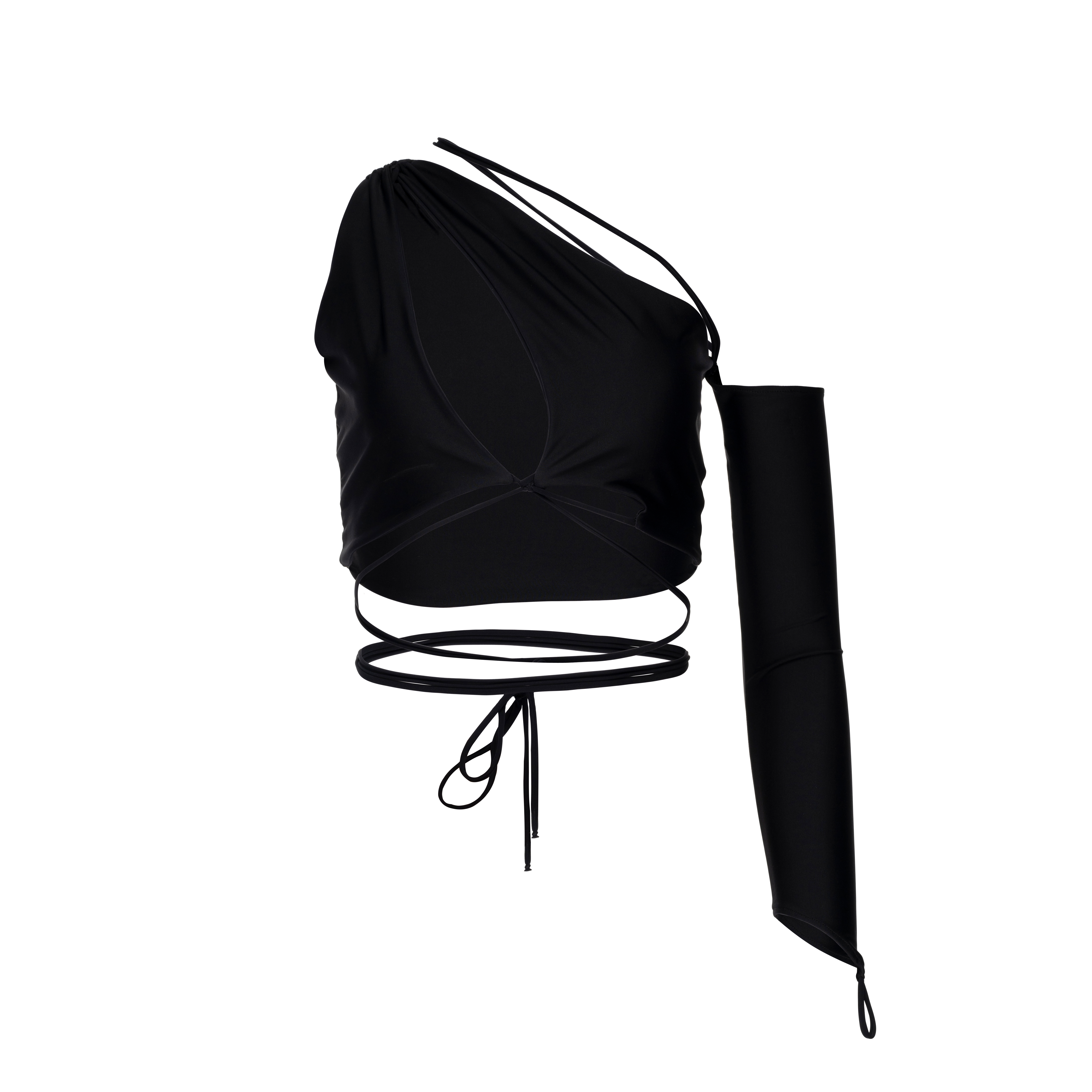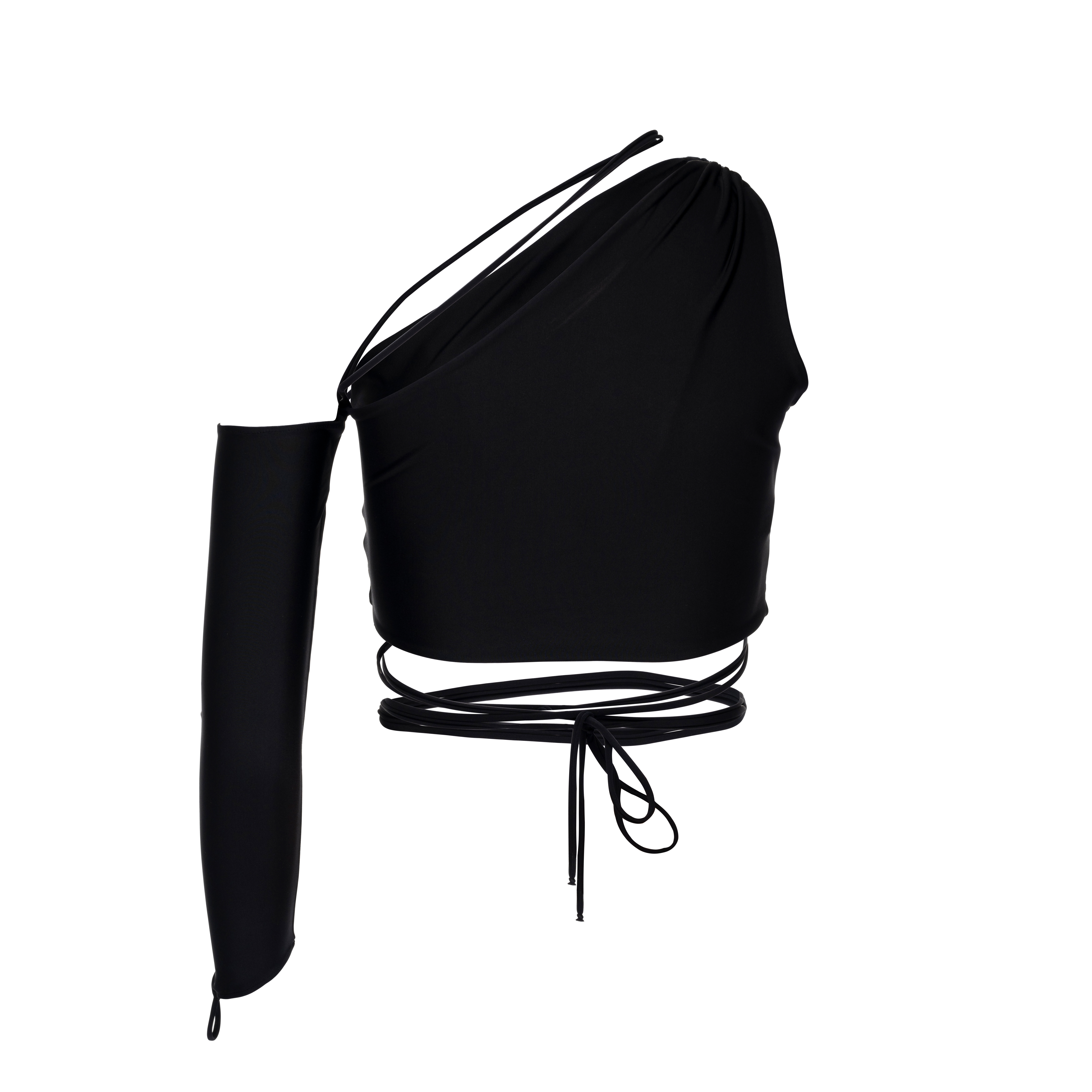 Top Dama Scurt Cu o Maneca Negru Lycra - Onica