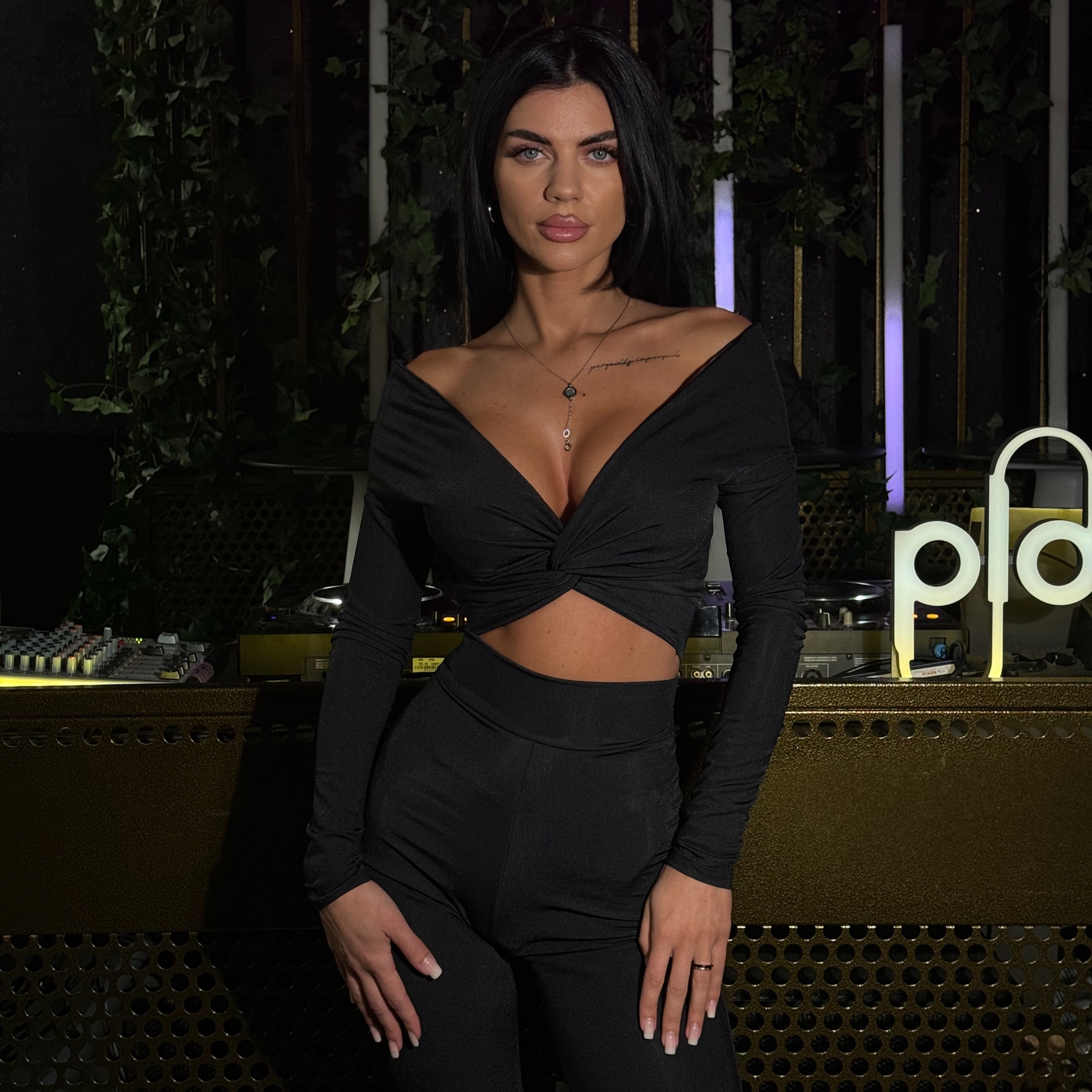 Top Dama Cu Umerii Goi Si Maneca Lunga Negru Lycra - Mia